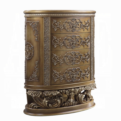 ACME Versailles Chest, Antique Platinum, 47" x 22" x 55"H, 209Lbs. Materials: Wood, Poly Resin, Wood Veneer