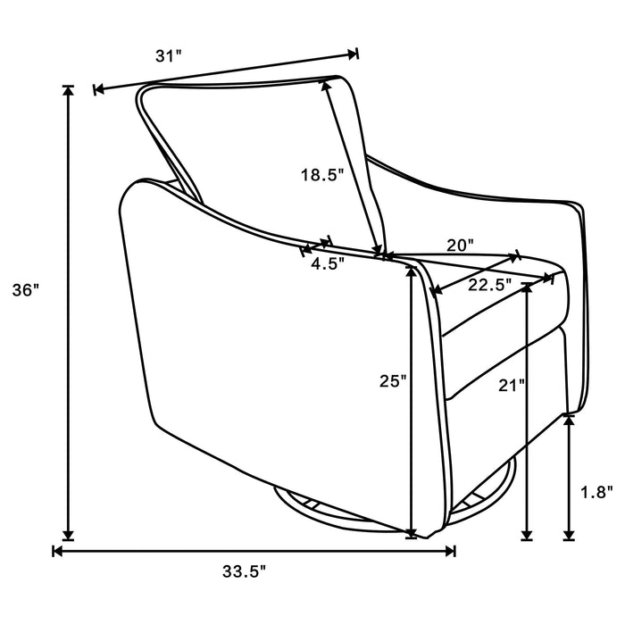 Nestled within the soft embrace of this bouclé upholstered chair, one finds a moment of tranquility. Its harmonious 360 swivel and glider functionality make each movement a fluid dance, a gentle invitation to unwind. The meticulously shaped arms, a testament to refined style, offer a restful perch for weary elbows. As the day's light fades, this chair becomes a cherished haven, its silhouette a blend of comfort and contemporary charm. In this cozy nook, time slows, and serenity takes a seat. Key Features: • Chair upholstered in soft, textured bouclé fabric for a luxurious feel • Features a 360-degree swivel and glider mechanism for smooth movement • Contemporary arm shape and style providing elegant aesthetics and comfort • Solid construction ensures durability and support • Versatile design complements both modern and traditional decors