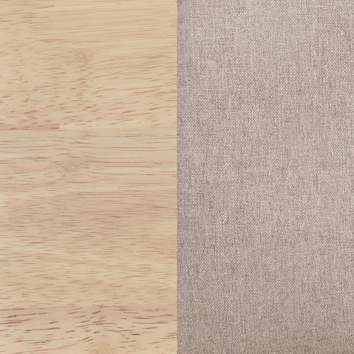 Elevate your dining space with the perfect combination of minimalist style and everyday comfort. This dining set pairs a beautifully crafted rectangular dining table with matching chairs, each constructed with solid wood and finished in a trendy tone cohesive to any room setting. The dining table offers a sturdy, spacious surface for meals, gatherings, or even work-from-home setups. Each chair features a padded foam seat upholstered in tan fabric, providing both style and comfort, while the simple yet elegant design of the set complements a variety of interior styles, from modern to transitional. Key Features: • Mid century modern style dining room set comfortably seats four • White-washed finish adds a fresh, airy aesthetic to any dining space • Dining chairs feature tan fabric upholstery with padded foam seats for comfortable dining • Minimalist design highlights clean lines and soft curves for a modern look • Solid wood construction for lasting durability and natural beauty